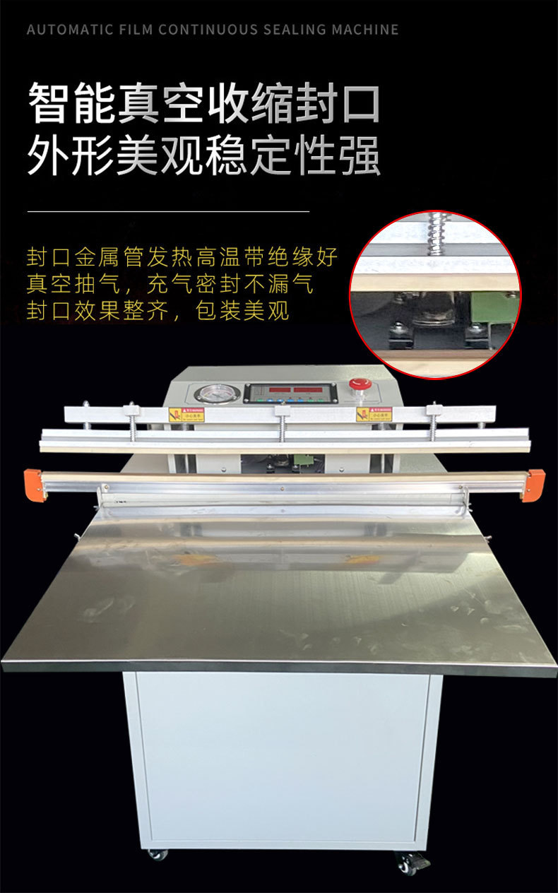 - 內抽式真空包裝機:有一個密封的真空室,通常由不銹鋼制成,配備真空泵、真空表、熱封裝置等。真空室體積較大,以便容納不同尺寸的產品和包裝材料。
