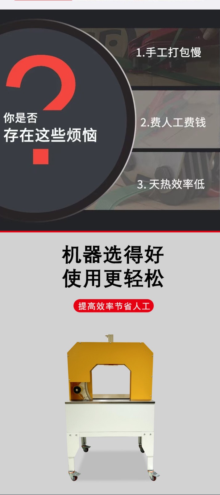 • 適用場景:適用于中等規模的生產企業,在一些生產環節中,物體的放置和取下仍需要人工操作,但膠帶的供給和切斷等過程由設備自動完成,能夠在一定程度上提高包裝效率,同時保持一定的靈活性。