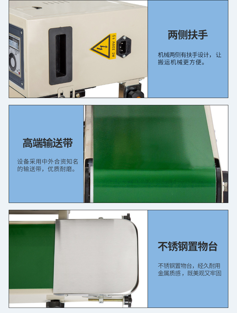 立式封口機可用于各種尺寸的包裝袋,尤其是大型包裝袋的封口作業,如大米、面粉、狗糧等大包裝產品,也適用于液體、粉末、重物等不同類型物料的包裝封口