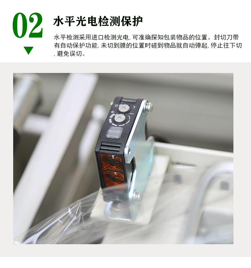 • 保護功能完善:封切部分裝有有機玻璃保護罩,并帶有自動報警功能,可大大提高操作者的安全性。封切刀帶有自動保護功能,能有效防止誤切包裝物14