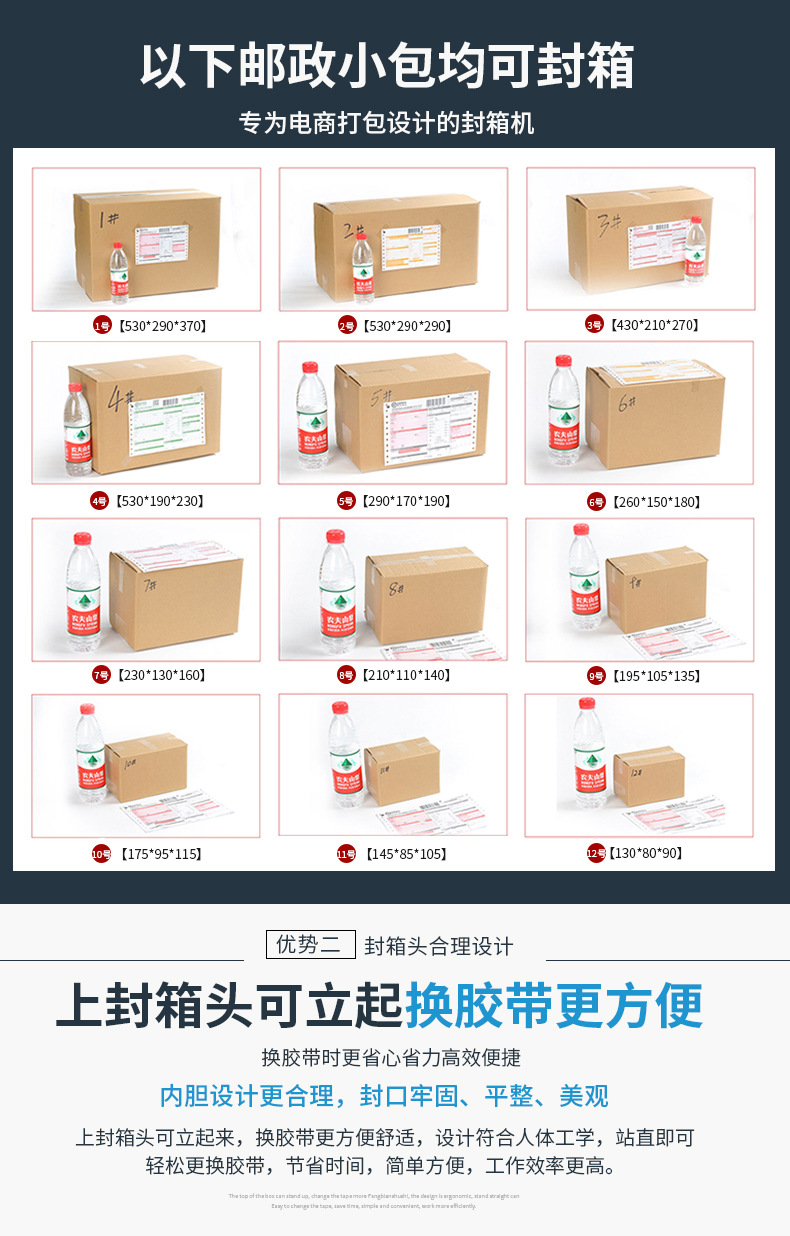 2. 穩定性:封箱機采用先進的機械結構和控制系統,具有良好的穩定性和可靠性。在封箱過程中,封箱機可以保證膠帶的粘貼位置準確、牢固,不會出現膠帶松動、脫落等問題。