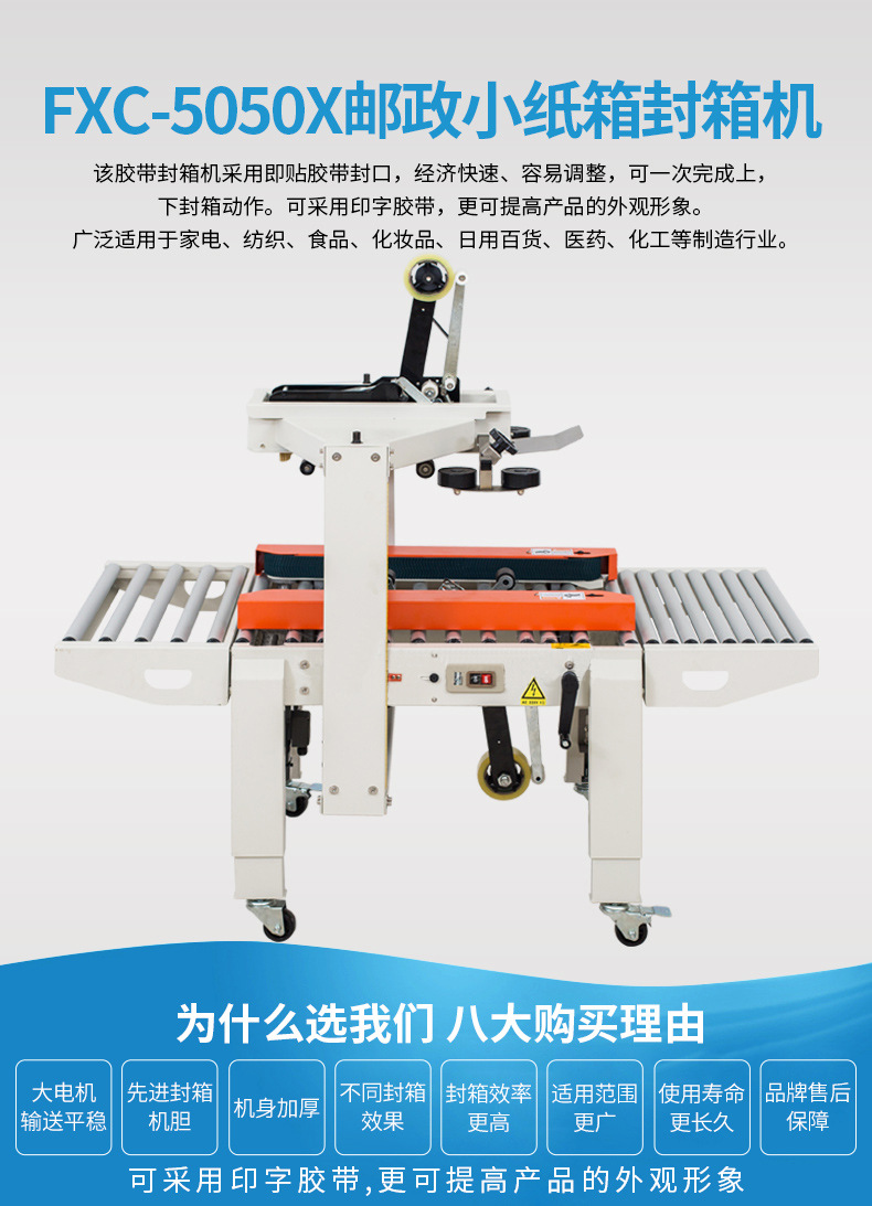 總之,封箱機是一種高效、穩定、靈活、安全的包裝設備,它可以大大提高包裝效率和質量,降低人力和時間成本,為企業的發展提供有力的支持。
