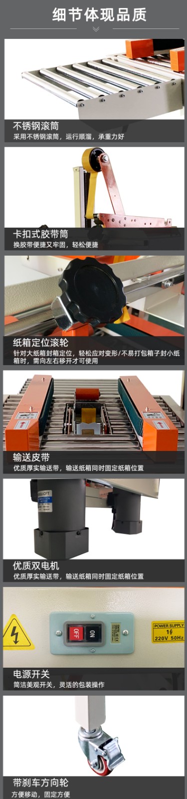 - 精準封箱:采用先進的控制系統(tǒng)和機械結(jié)構(gòu),能夠確保膠帶粘貼位置準確,封箱效果美觀牢固。