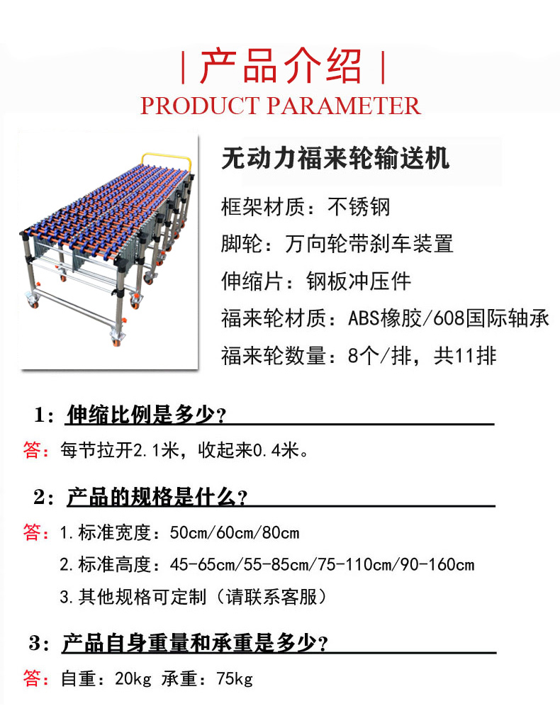 - 通用性強:能夠輸送各種形狀的物體,只要物體底部相對平整,就可以在滾輪上滾動輸送,無論是方形的箱子、圓形的桶還是其他不規則形狀的物品(在一定范圍內)。