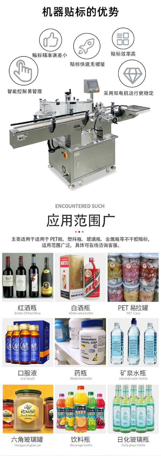 適應性強:可適應不同規格、形狀的圓瓶,通過調整設備的參數和更換相