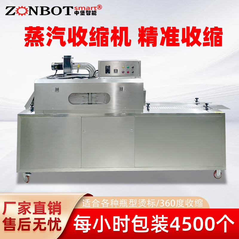 蒸汽的恒溫(通常溫度可控范圍 50-120℃)和擴散均勻性,能避免傳統熱風加熱導致的 “薄膜起皺、局部破裂” 問題,即使是異形產品(如不規則五金件、弧形瓶身),也能實現平整、無氣泡的收縮效果。 - 生產效率高:適配大規模量產需求