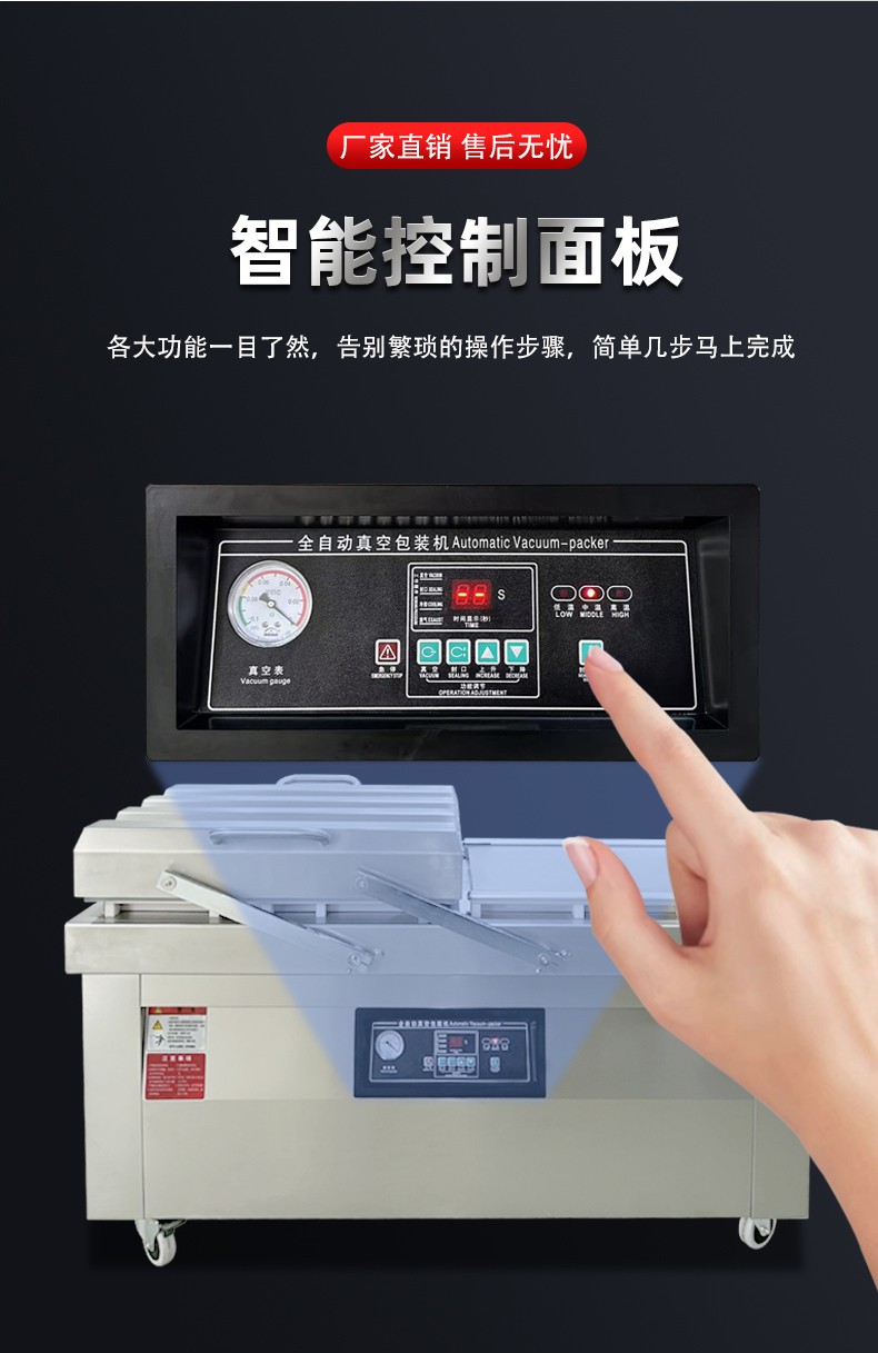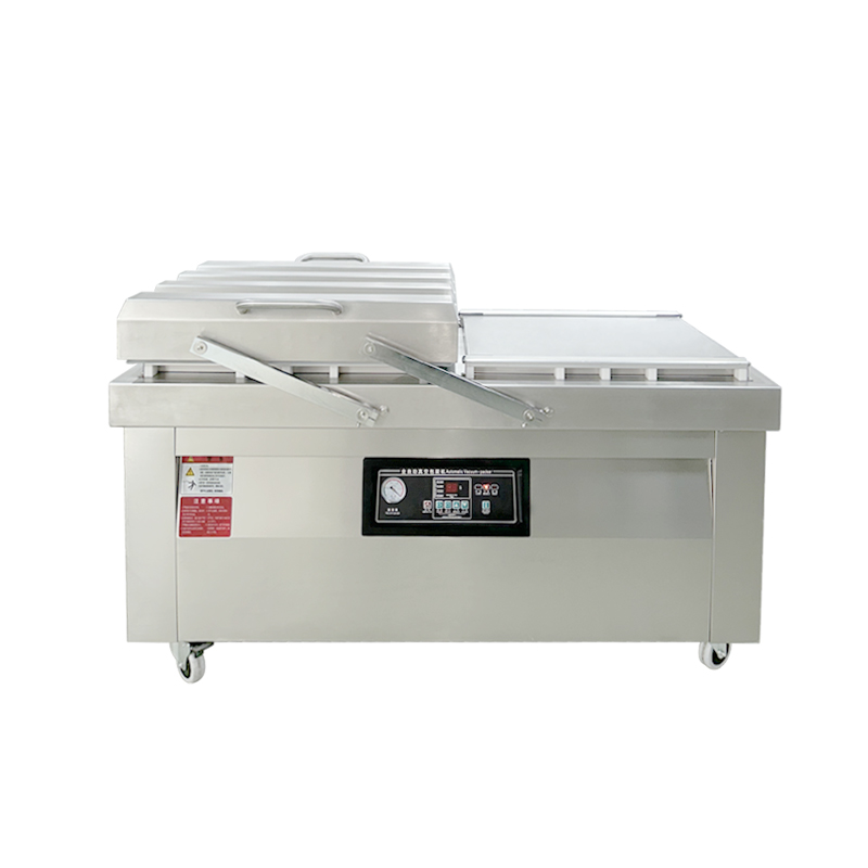 雙室真空包裝機通過 “雙真空室輪換作業” 實現抽真空與裝袋無縫銜接,核心是利用兩個獨立真空室的 “時間差并行操作”,讓設備在同一周期內同時完成 “抽真空密封” 和 “人工 / 自動裝袋”,徹底消除單室機型 “抽真空時無法裝袋” 的等待間隙,大幅提升作業效率。其具體運作邏輯和優勢可拆解為以下 3 點: