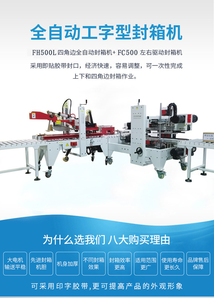 BG-FH500L+FC500自動折蓋工字型封箱機 四角邊自動感應(yīng)無人化封箱機