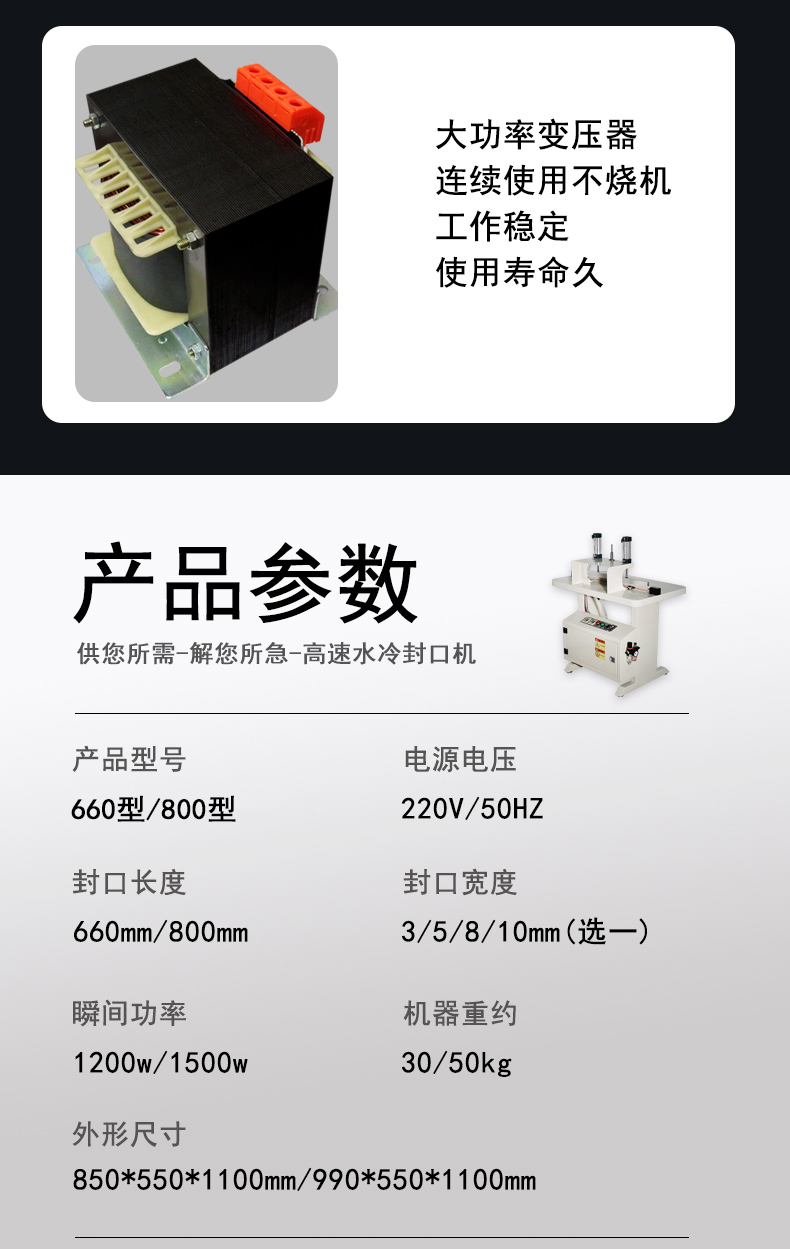 660GSJ水冷氣動封口機防護服紙塑袋鋁箔PE袋眼睫毛封切封口機