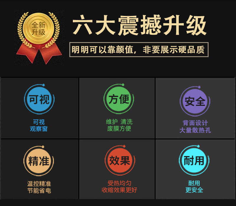 熱收縮機的工作原理很簡單,首先需要將物品放入機器內部,然后調整好收縮溫度、收縮時間和速度等參數,接下來就讓機器自動為你搞定一切吧!經過收縮處理的物品不僅外觀更加美觀,而且可以提高物品的耐壓、耐磨性能,延長物品的使用壽命。首先,在操作熱收縮機之前,一定要確保機器的電源已經插好,并且完好無損。其次,物品放入收縮機內部時,要確保物品表面干凈,沒有油污等雜物,以免影響收縮效果。此外,收縮機的溫度不要調得太高,以免損壞機器。最后,注意收縮過程中不要拉動物品,以免導致物品變形。