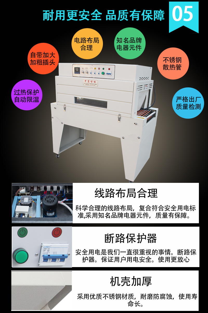熱收縮機采用的進口材料,保證了產品的質量和性能,使您的產品在收縮包裝后,更耐用、更美觀,更具市場競爭力。