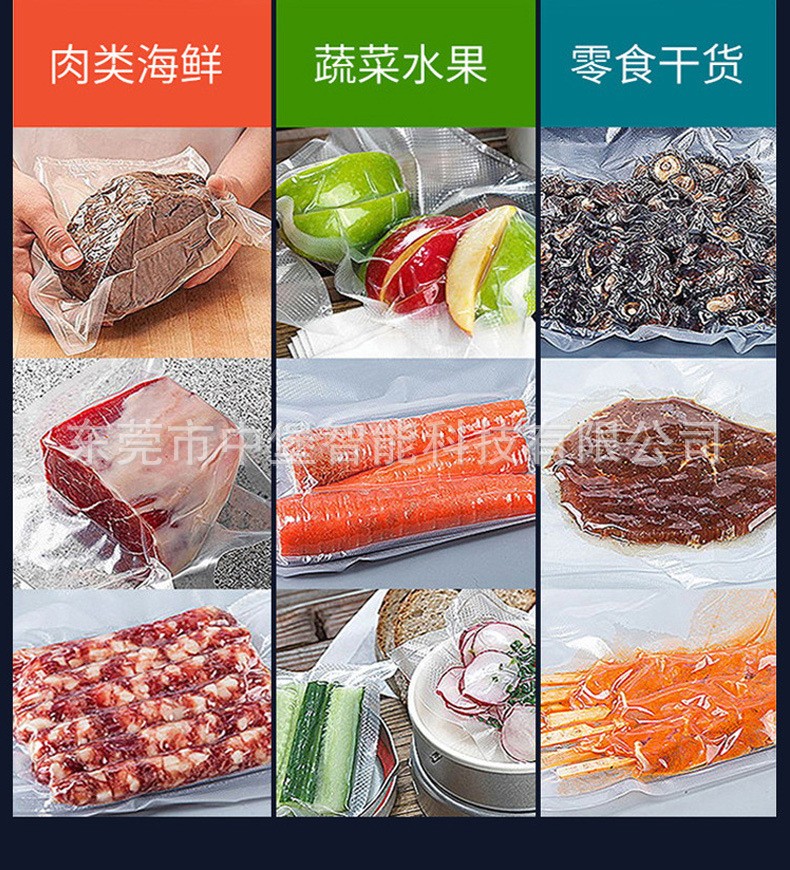 本設(shè)備類型的真空只須按下真空蓋即自動(dòng)按程序完成抽真空、封口、印字、冷卻、排氣的過程。經(jīng)過包裝后的產(chǎn)品防止氧化、霉變、蟲蛀、受潮、可保質(zhì)、保鮮而延長產(chǎn)品的儲(chǔ)存限期
