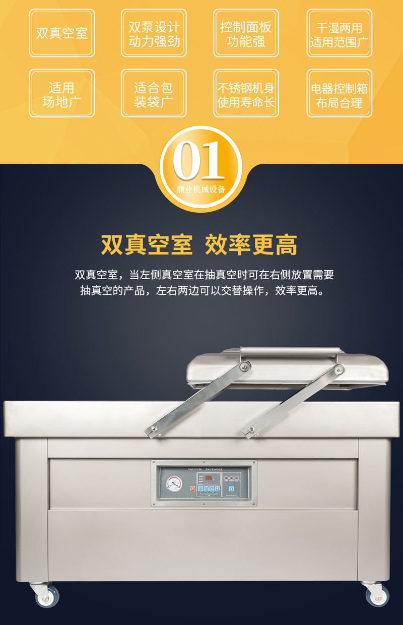DZ500雙室食品真空機 干濕兩用真空封口機 雙室內抽真空包裝機