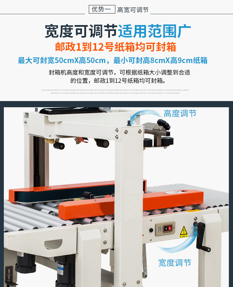 封箱機主要適用于紙箱的封箱包裝,既可單機作業,也可與流水線配套使用,它可單箱作業,也可與紙箱成型開箱機、裝箱機、貼標機、捆包機、棧板堆疊機、輸送機等設備配套成包裝流水線使用,為包裝流水線作業必須的設備
