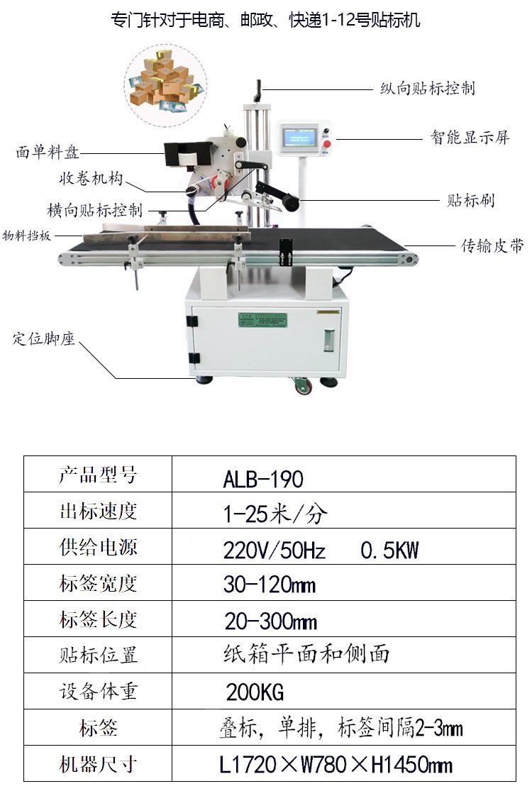 FXC-4030+ALB-190全自動貼標機快遞單貼標機 快遞單貼單機 電商物流快遞面單貼單機 封箱貼標一體機