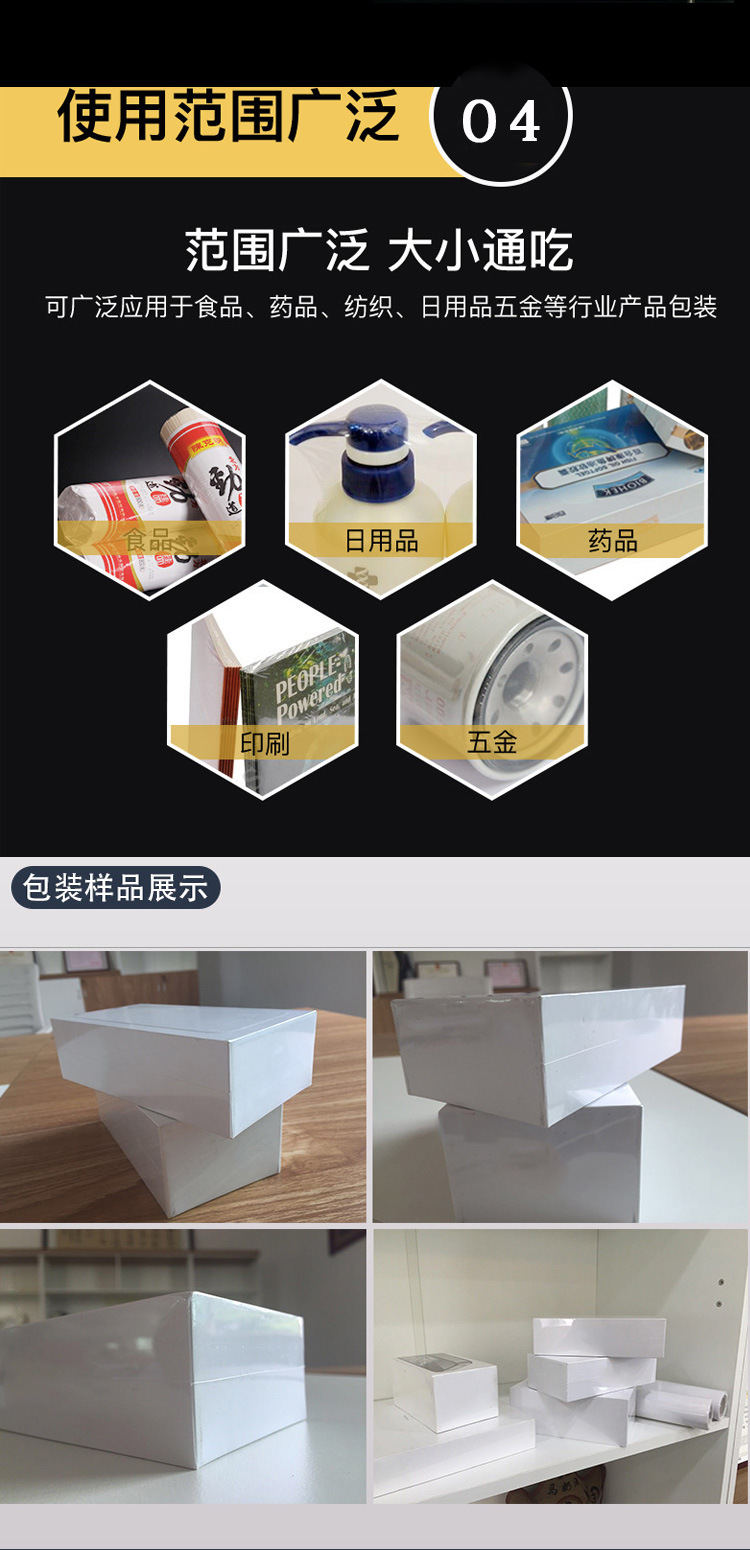 全自動封切收縮機是新型的全自動無人化操作的機型,只需將產品放在進料輸送帶上,通過光電感應,自動完成輸送-封口-輸送全過程,收縮爐采用不銹鋼加熱器,大功率電機運風。產品介紹 本機也可與工廠生產線連接。實現無人化生產,適用于軟件、餅干、印刷、制藥等行業