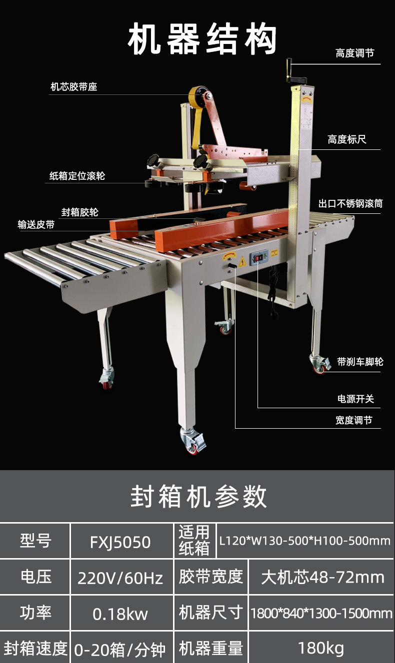 封箱機,也稱為Case sealer machine,主要用于紙箱的封箱包裝。它們不僅適用于單機作業(yè),也可以與流水線配套使用,是包裝流水線作業(yè)中不可或缺的設備。封箱機的功能包括自動折疊、粘合和封口紙箱,通過先進的感應和控制技術,能夠自動檢測和調(diào)整紙箱尺寸,按照設計要求進行折疊和封口操作,大大提高了包裝的效率和一致性,減少了人工操作的錯誤和勞動強度。