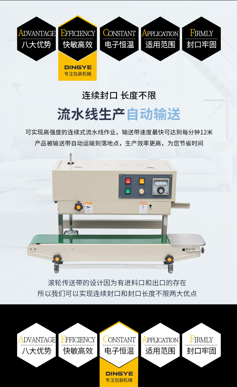 封口包裝機的主要功能是將充填有包裝物的容器進行封口。?這種機械在產品裝入包裝容器后,?通過不同的封口方式,?如遠紅外線輻射直接加熱PVC/POP收縮膜,?達到完美的收縮包裝效果,?從而實現密封、?防塵、?防潮和防盜性。?封口包裝機的應用范圍廣泛,?包括食品、?餐具、?熟食品、?肉類、?方便面、?面食、?飲料、?糖果、?文化用品、?超市商品、?五金工具、?日用百貨、?工藝品、?化工產品、?木制品、?印刷制品、?塑料制品、?玻璃制品、?電子元件等產品