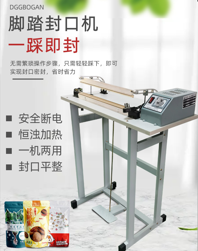腳踏封口機是根據國內外先進的機型基礎上,重新設計制造而成,適用于所有塑料袋薄膜封口及制袋,是食品廠,化妝品廠,藥廠等單位的理想封口設備。