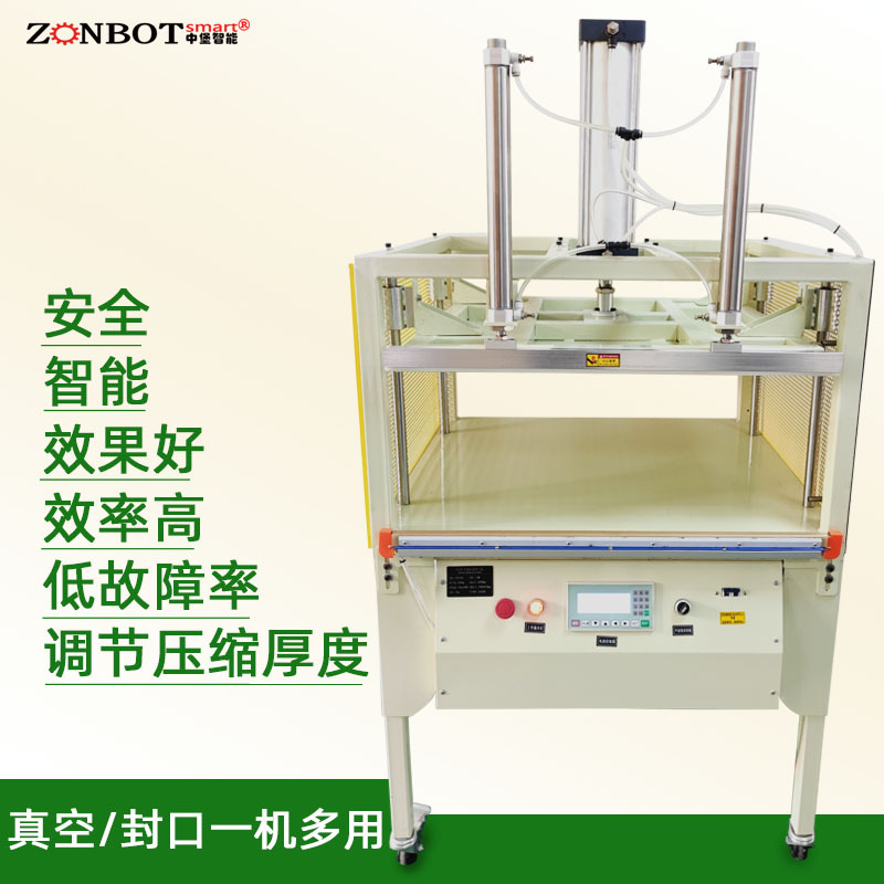 壓縮包裝封口機適用于壓縮包裝羽絨被服、太空棉被服、枕頭、發泡棉、毛巾等蓬松的其它物品。可縮小包裝的物品及防潮防塵